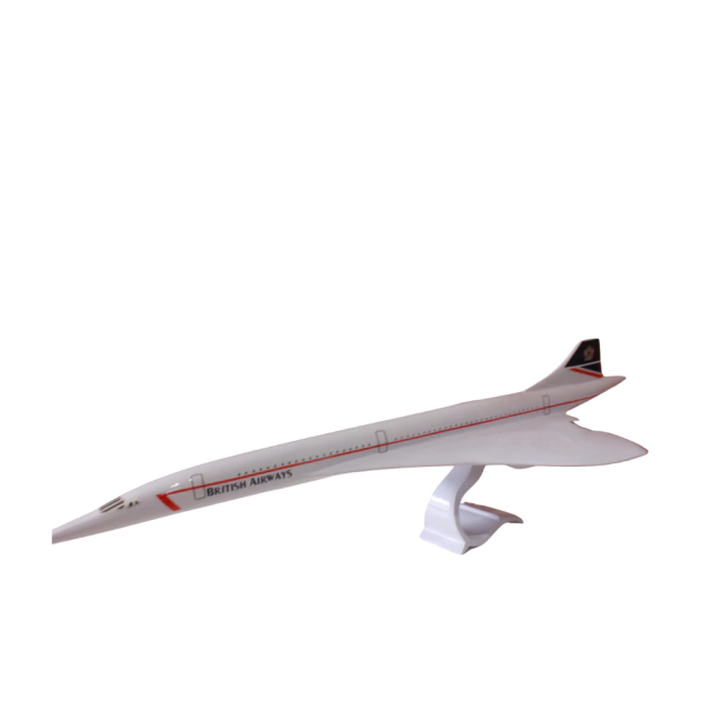 A maquete do Concorde da British Airways, com 65 cm de comprimento, é uma representação detalhada e impressionante de um dos aviões mais icônicos da história da aviação. Este modelo captura a elegância e o design aerodinâmico do Concorde, destacando suas linhas suaves e características únicas, como o nariz inclinável e as asas em delta. Pintado com as cores clássicas da British Airways, incluindo a fuselagem branca e a cauda azul com o logo distintivo, esta maquete é uma peça de destaque para qualquer entusiasta da aviação. Perfeita para exibição em escritórios ou coleções pessoais, ela evoca a era dourada dos voos supersônicos e a inovação tecnológica da aviação civil.