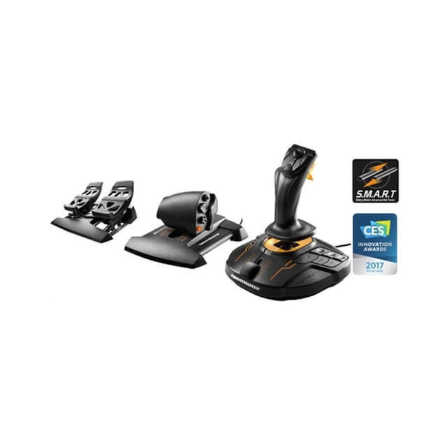 É composto pelo manípulo de voo T.16000M FCS (Flight Control System), a manete de potência TWCS (Thrustmaster Weapon Control System) e os pedais TFRP (Thrustmaster Flight Rudder Pedals). O T.16000M FCS FLIGHT PACK é compatível com o PC via USB no Windows 10, 8, 7 e Vista (32 e 64 bits).