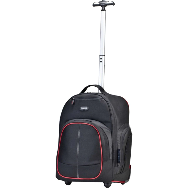 Bonita, Discreta, Confortável, Segura e com Rodas A mochila com rodas da Targus possui um puxador embutido, que pode ser utilizado, a qualquer momento, basta apertar um botão e puxar é ideal para profissionais que viajam muito, e precisa transportar seu notebook entre aeroportos e até mesmo dentro da empresa, ele é especialmente desenvolvido para o transporte de notebook de até 16" e seus acessórios, ela também possui compartimento para transporte de cadernos, documentos, ela possui alças para ombro e compartimento acolchoado para o notebook aumentando a segurança no transporte de seu equipamento. Características: Compartilhamento acolchoado para notebook de até 16", com divisórias para pastas.e roupas. Abertura principal com fechamento com dois zíperes. Bolso superior pequeno com zíper para pequenos acessórios. Alça para os ombros. Alça macia para as mãos. Puxador especial embutido. Bolso frontal médio inferior com dois zíperes com suportes pequenos para celular e calculadora, suporte médio para agenda eletrônica, suporte para canetas, suporte médio de rede para acessórios e prendedor de chaves. Bolso lateral direto com zíper para pequenos acessórios. Bolso lateral esquerdo de rede com elástico para garrafa ou acessórios. Tampa traseira com velcro para guardar as alças de ombro quando não for utilizadas. Especificações: Cor: Preto com detalhes em cinza. Dimensões: Compartimento do notebook: Acolchoado 26,67 x 4,19 x 38,74 cm Tamanho Externo Total: 49 x 19 x 33,99 cm Nylon: Exterior de poliéster durável com um neoprene soft-touch alça superior Peso: 1,81 kg Obs.: Notebook, agenda eletrônica, canetas, mouse e celular não estão incluso, foto ilustrativa.